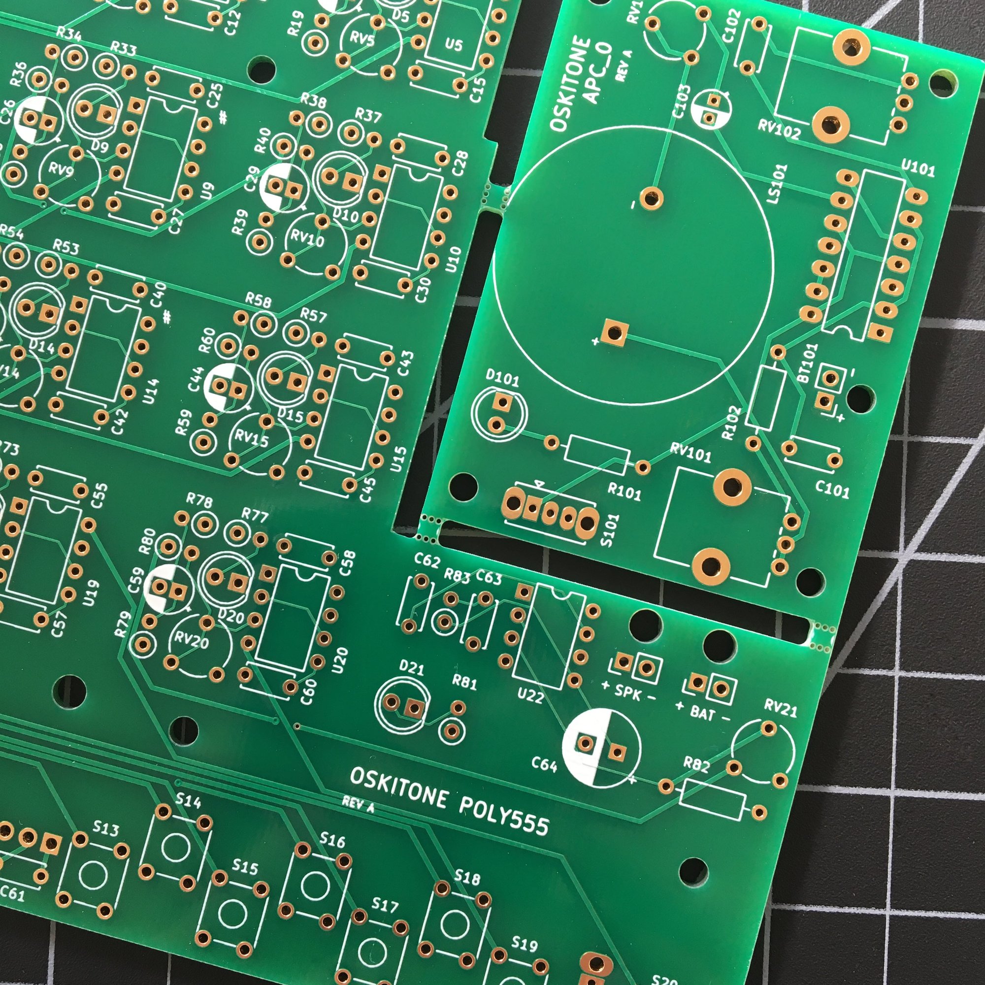 Added bonus!: all bare POLY555 PCBs now ship with an attached APC board, for free! Snapping them apart is both fun and very easy to do.